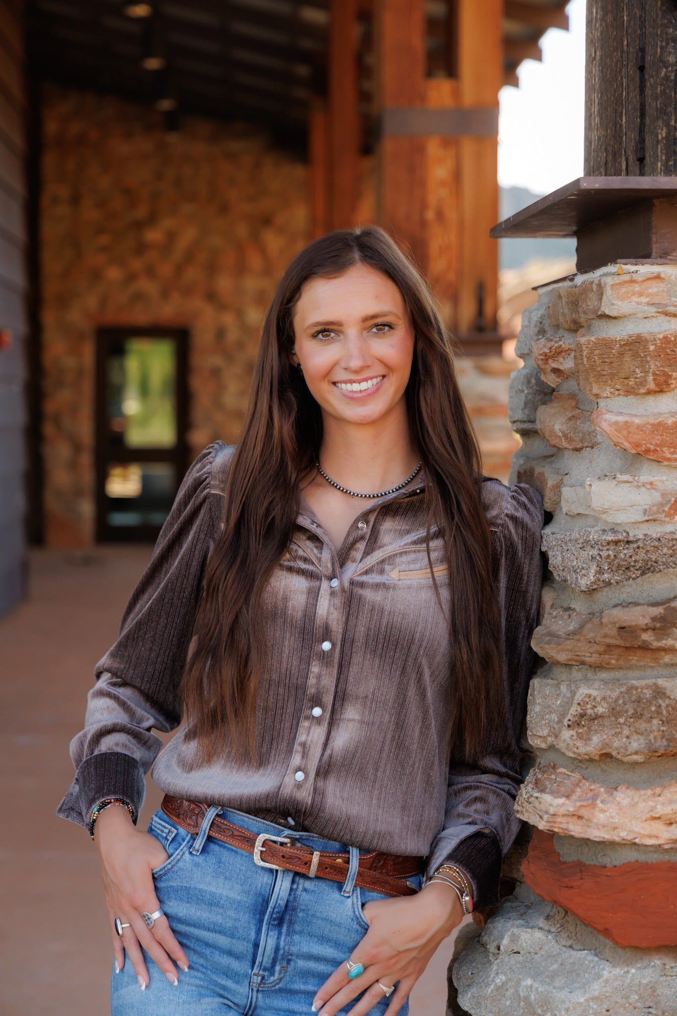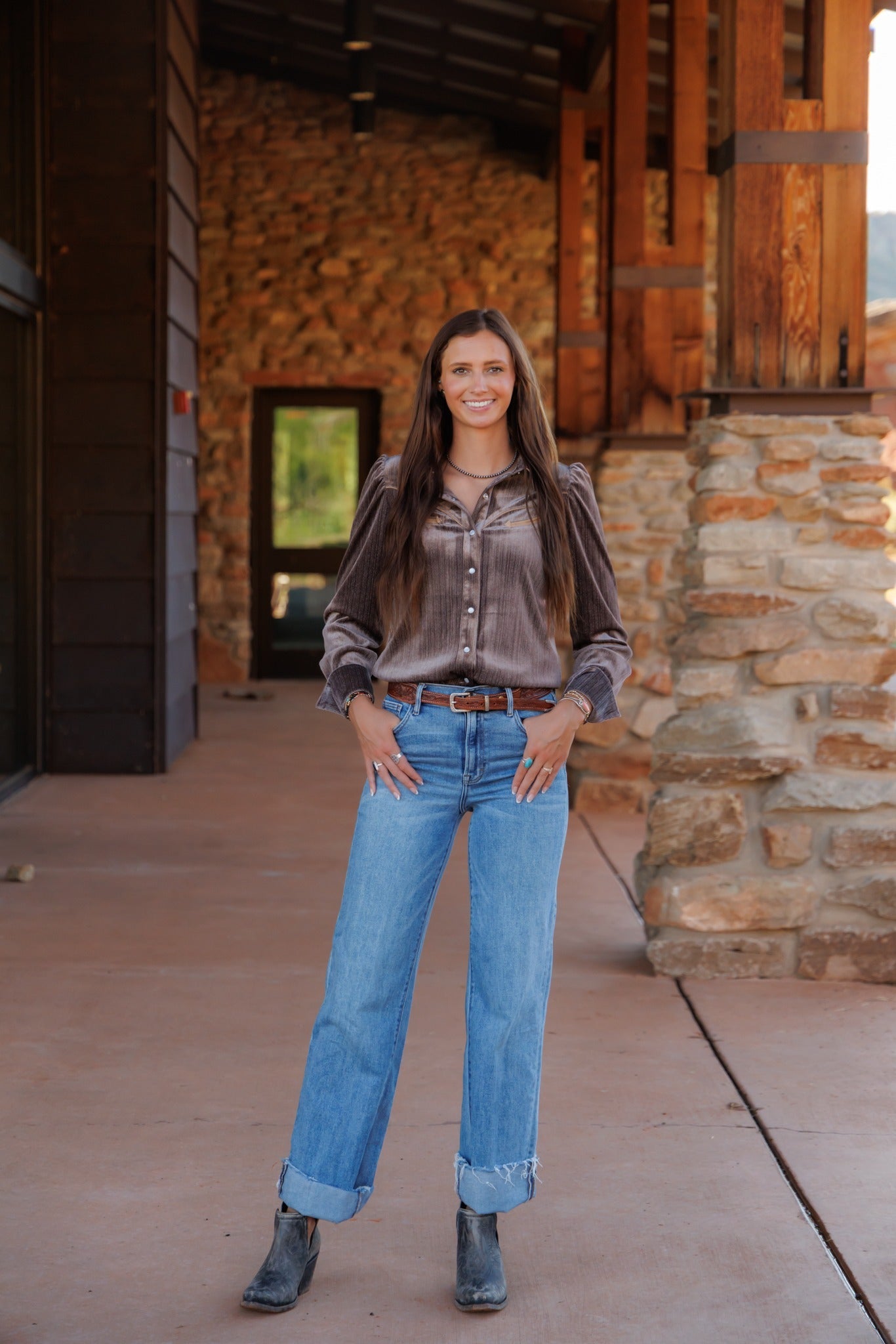 Pearl Snap, Brown Velvet LS HH2732